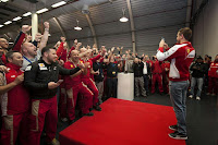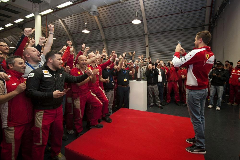 Malj futamgyzelme utn Sebastian Vettel Maranellban jrt, ahol olasz nyelven mondott egy rvid beszdet az F1-es gyrt dolgozinak, hangslyozva ktdst friss csapathoz.